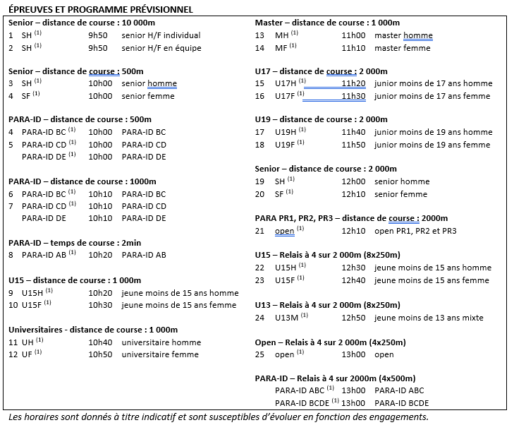 • Le 10 000m peut se courir par équipe de 2, 3 ou 4 rameurs.